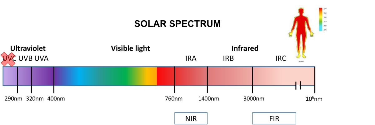 heat source, is divided into three categories: A, B and C. Each category has its own characteristics, but for home use it is especially the long-wavelength C-waves, also known as FIR (Far Infrared), which are of interest. These waves are proven to be the most effective and offer the greatest health benefits
