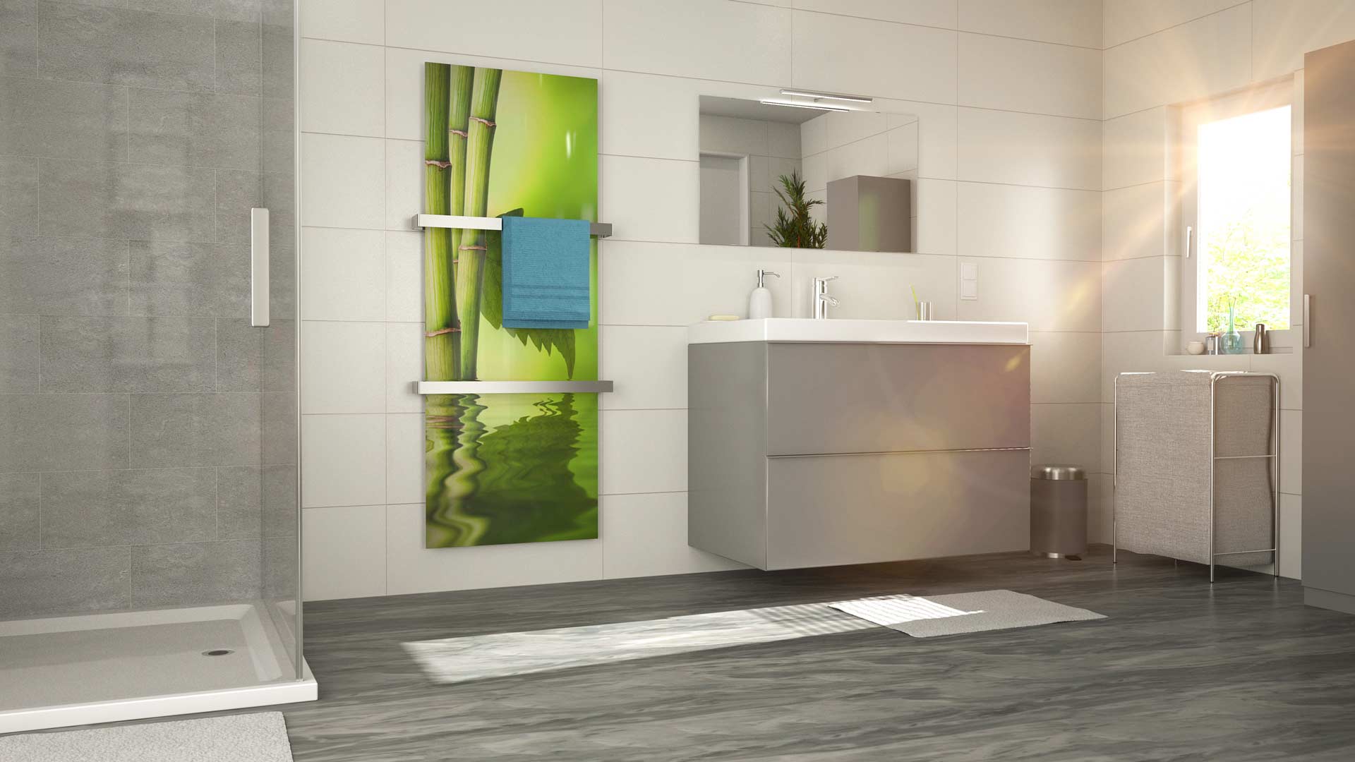 Transform your bathroom into a luxurious oasis with the DIGEL HEAT bathroom heater that also functions as a practical towel holder. This innovative heater offers both style and functionality, ensuring your towels are cozily warm after a shower or bath. Choose between five elegant variants: Classic with white powder coating, black or white glass heater, picture heater with optional motif, and mirror heater.